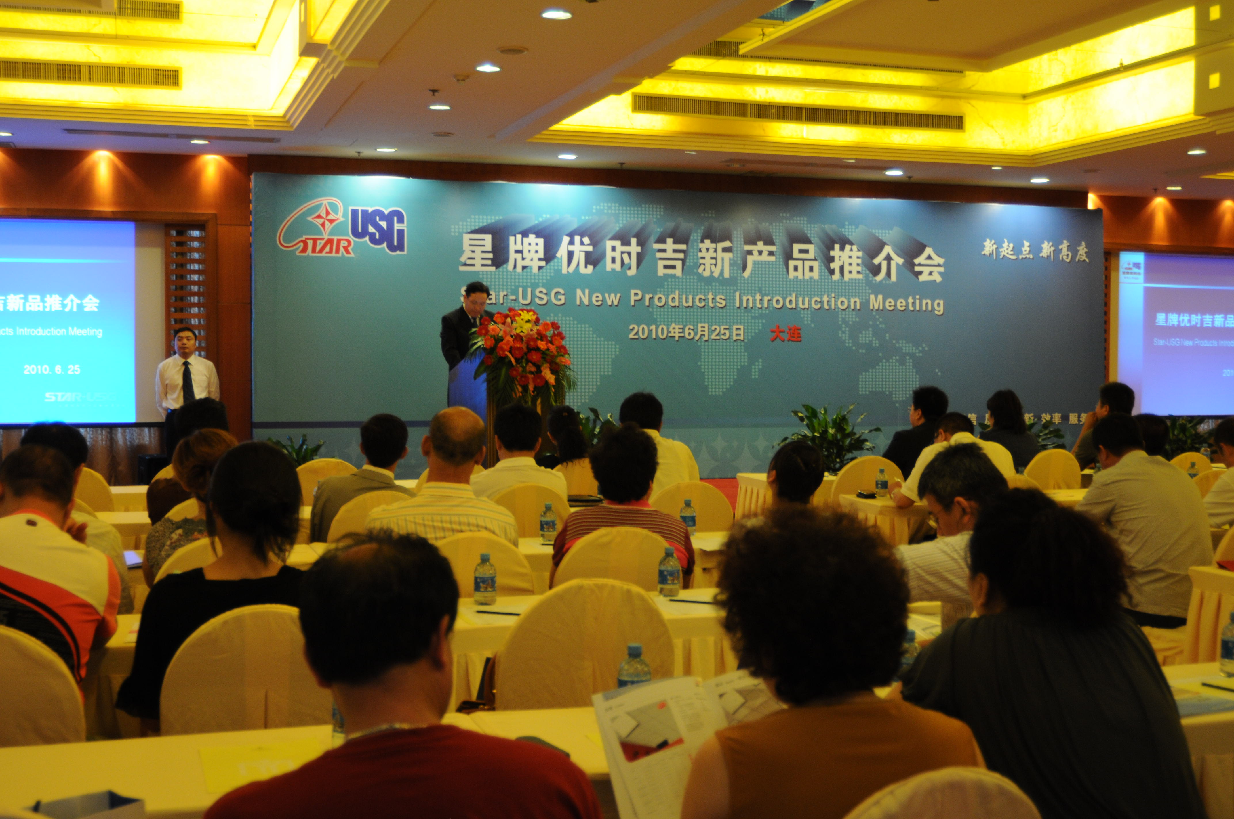6月25日,星牌优时吉建筑材料有限公司(以下简称“星牌优时吉”)新产品推介会在大连星海假日酒店隆重举行,星牌优时吉推出了具有优异防火、吸声、隔热、保温、环保装饰性能的矿棉天花系列产品。来自设计院、建筑公司、装饰公司、经销商代表及媒体百余位嘉宾参加了此次会议。